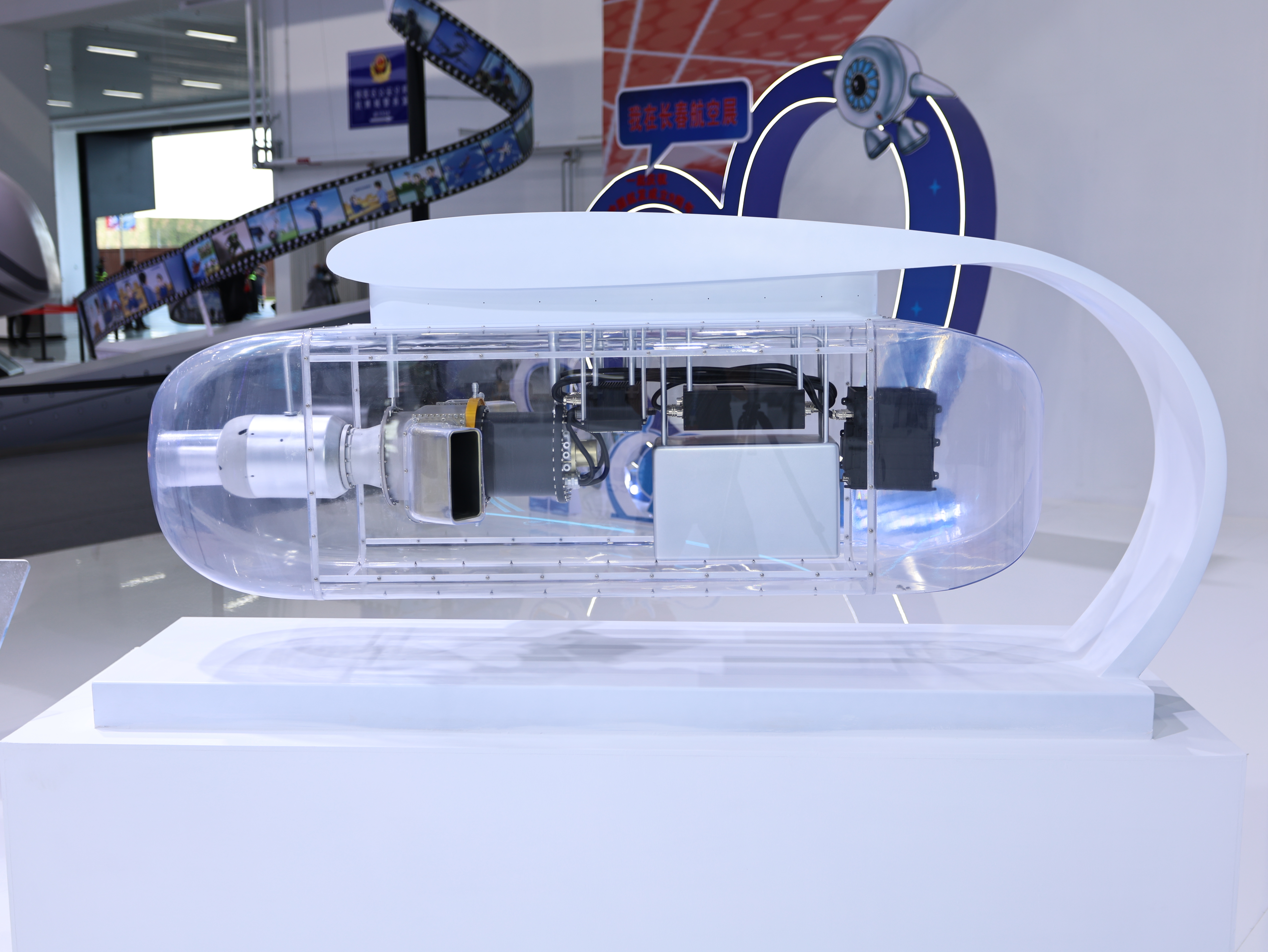 首次公开展示的60千瓦级混合动力系统,是一款涡喷式混合动力系统,最大功率可达80千瓦,主要用于增程式eVTOL供电吊舱及1吨级eVTOL主动力。